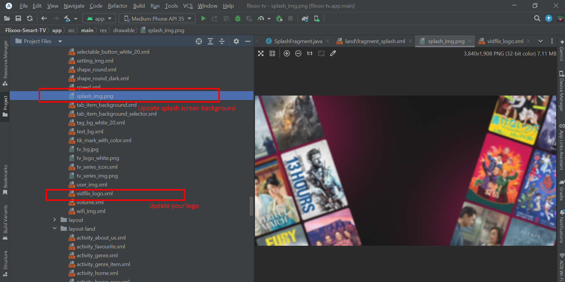 - Open Android Studio > app > res > drawable-nodpi > splash-image.png