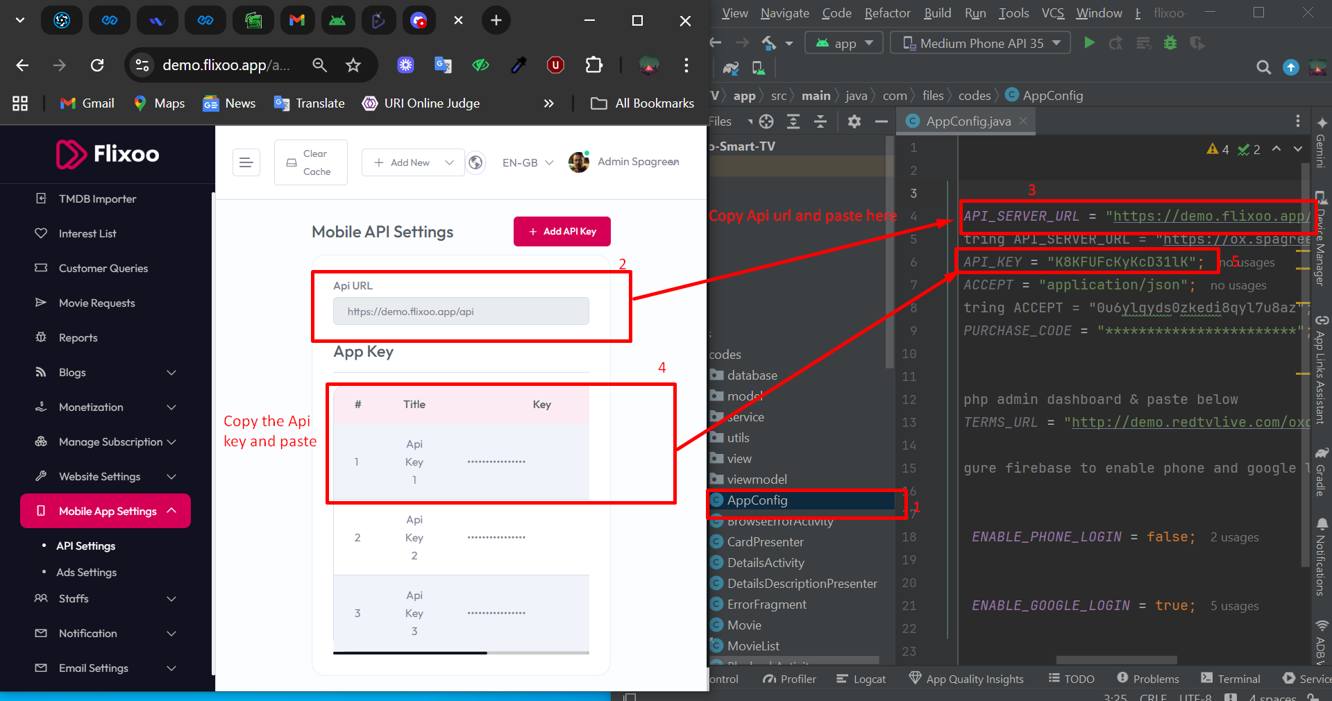 - Then Open Android Studio >App> java > com > flixoo >spagreen >config.java